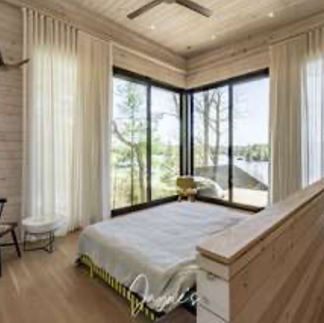 A 3+1 bedroom cottage is nestled in a very private setting on one of Muskoka's prime locations on Lake Joe. Known as a secluded property situated in the prestigious Gordon Bay area, just 20 minutes from Rosseau or Port Carling. Islandview Haven, of Jayne's Luxury Rentals features a newly built, modern architect-designed cottage that sits on a southwest-facing waterfront property with an impressive 360 feet of frontage. The property boasts a shallow, crescent-shaped sandy bay that provides easy access for play and swimming. This idyllic setting is positioned between a charming 100-year-old single-slip two-story boathouse, complete with a 12'x24' dock, and an onshore deck that includes a hot tub right at the water's edge.