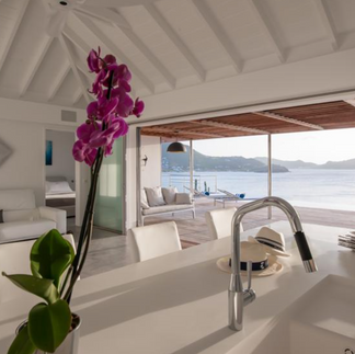 Experience Villa Pointe Milou with Ici et La, which is located in Pointe Milou, St. Barth, facing the setting sun. Perched above the ocean, the panoramic view of the ocean and the surrounding islands is absolutely beautiful, a real pleasure to the eye. This newer modern style villa offers four beautiful bedrooms, a large terrace and a long heated pool, ideal for laps. The first two bedrooms are connected on both sides of the living room and also have direct access to the terrace. One of them can also be connected to the third bedroom for the needs of a family but if this option is not necessary, the connecting doors will be completely closed and the access will be through the terrace. These three bedrooms enjoy a magnificent ocean view. The fourth bedroom is located on the lower floor and has a small private terrace with a view of the peaceful tropical garden. The fitness room located next door offers an exercise bike of the famous Peloton brand. For subscribers and connoisseurs, your favorite training programs will even be available on holiday!